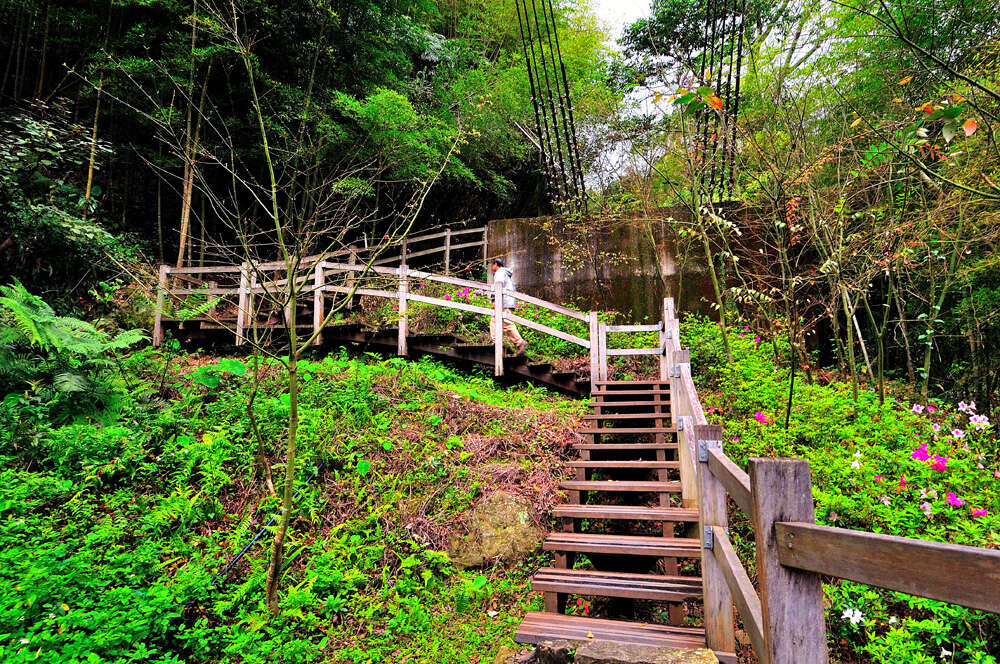 豐山的石盤谷,群山環抱,峭壁、巨岩遍立,屬階梯式的溪谷地形,乾坑溪流經其間,形成大大小小的瀑布、溪潭,由下往上溯,共有六個瀑布,風貌各具千秋,是喜愛原始風味、自然探險的旅人不可錯過的勝地。
