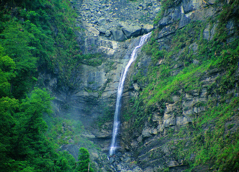天水瀑布是位於鐵達尼下方的一座大型瀑布,屬懸谷型瀑布。瀑長約150~200公尺,由塔山頂一路下洩至來吉部落,而鄰近的鄒族神話傳說觀景亭,是由來吉社區當地的木雕師父集體創作,深具原創性又趣味性,遊客不妨細細品味鄒族的傳說故事!