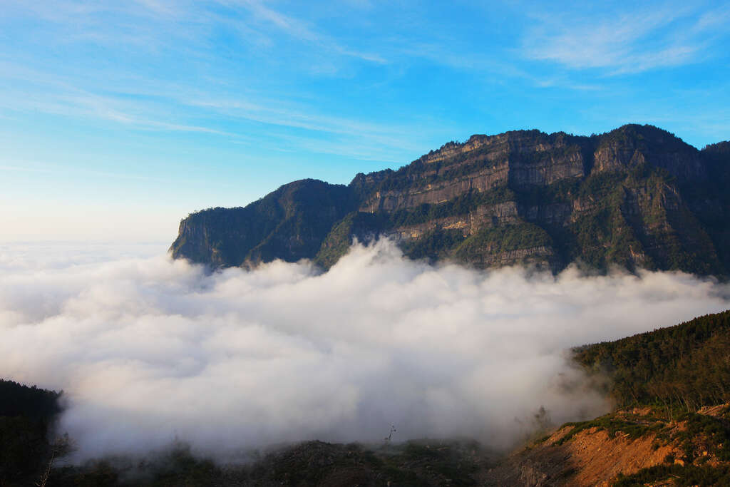 聖塔山由玉山入西山、鹿林山、阿里山、祝山,再峰起海拔2,663公尺高的主峰。聖塔山群呈萬馬奔騰,由天而降之勢,是神話最多的地方,鄒族人尊稱為『聖山』,鄒族傳說中的小米女神即住在聖塔山上。小塔山在登山圖籍上又被稱為『聖觀音峰』,當地人尊稱為『大佛山』。巍然聳立於雲間的聖塔山,充沛著無窮的天地靈氣,在兩千多公尺高的峭壁上,訴說著數不盡的神仙事蹟。