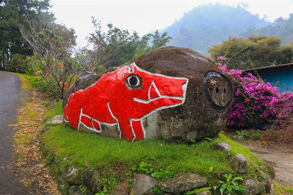 位於阿里山鄉的來吉村有著山豬部落之稱,是少數的鄒族部落之一,相傳有一位鄒族獵人因為追逐山豬而發現了水草肥沃的她(來吉村),而落地深根發展至今成為來吉村,該村莊為紀念此事在部落四處設置了上千處的山豬意象,營造出吉村處處有山豬的景緻,其中又以山豬石雕最為著名。